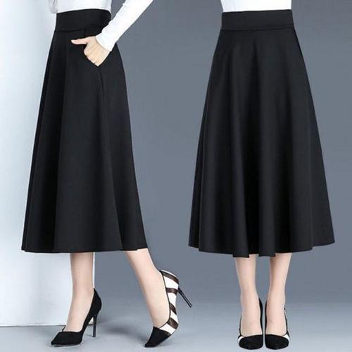 여성용 세미플레어 주머니 허리밴딩검정 데일리 플레어스커트 WFK1XMJ
