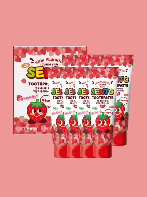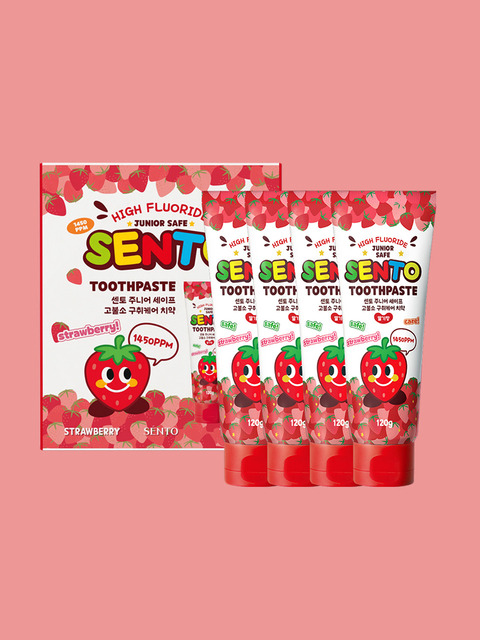 [센토] 센토 주니어 세이프 고불소 구취케어 어린이치약 딸기향 120g 4개