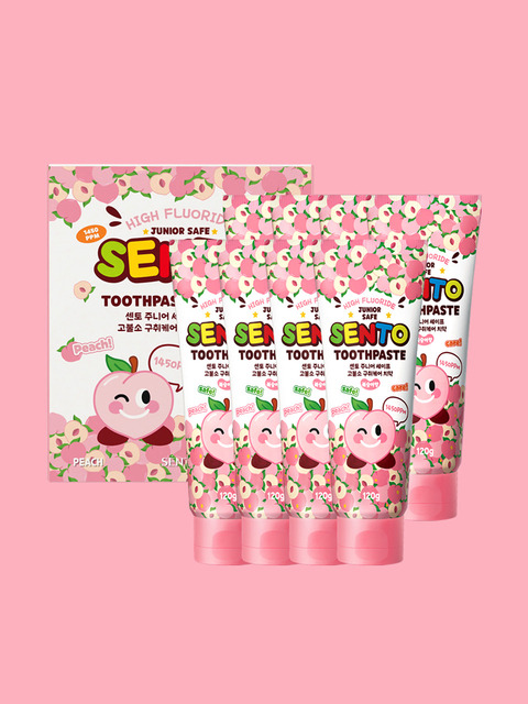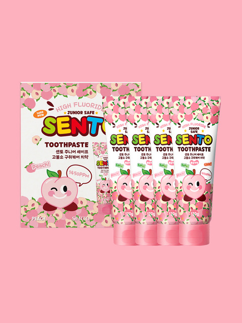 [센토] 센토 주니어 세이프 고불소 구취케어 어린이치약 복숭아향 120g 4개