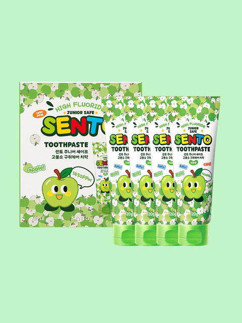 [센토] 센토 주니어 세이프 고불소 구취케어 어린이치약 사과향 120g 4개