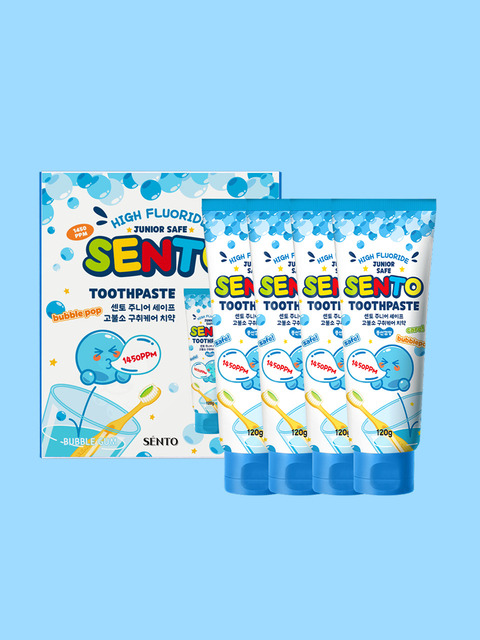 센토 주니어용 세이프 고불소 구취케어 치약 풍선껌향, 120g, 4개