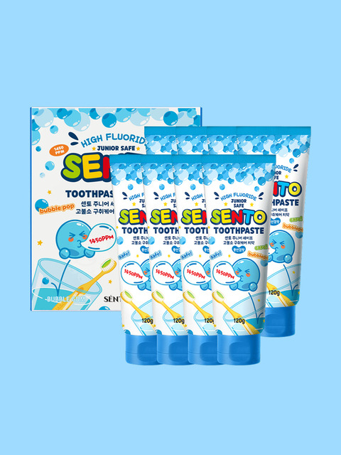 [센토] 센토 주니어 세이프 고불소 구취케어 어린이치약 풍선껌향 120g 8개