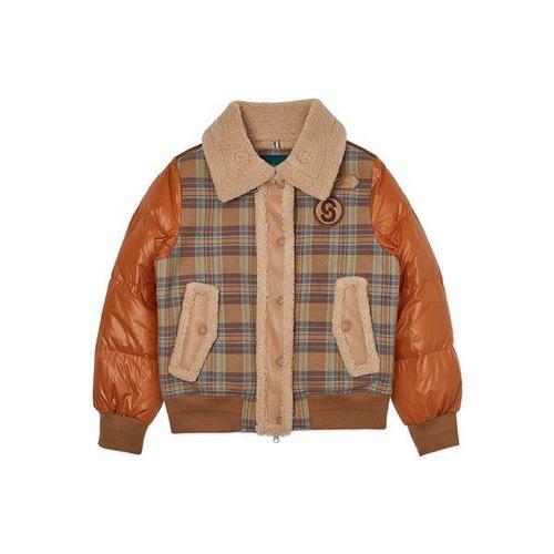 [세인트나인]여성 울 변형 체크 미들다운 점퍼 BEIGE