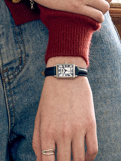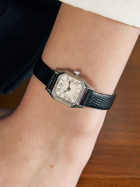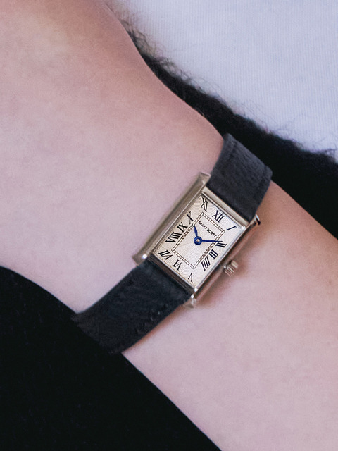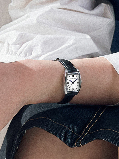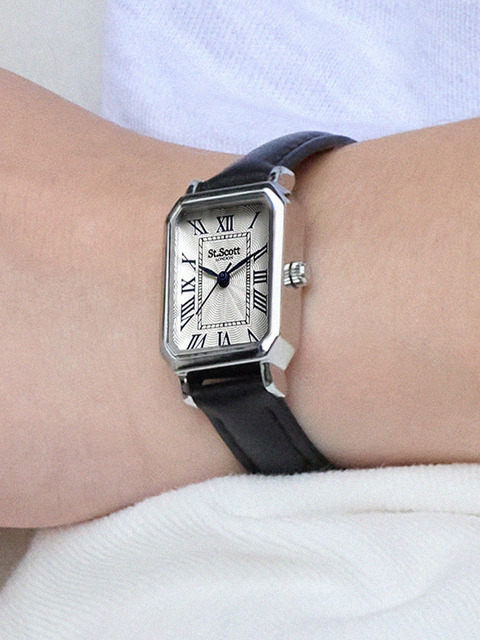 [세인트스코트 런던] 뮈렌 오벌스퀘어 가죽 여성시계.실버블랙.ST8101
