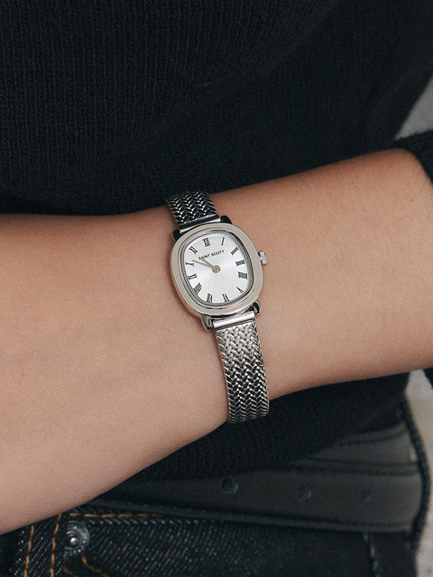 [세인트스코트 런던] 스텐레스스틸 발렌트 쿠션 여자 메쉬 실버 시계.ST4001