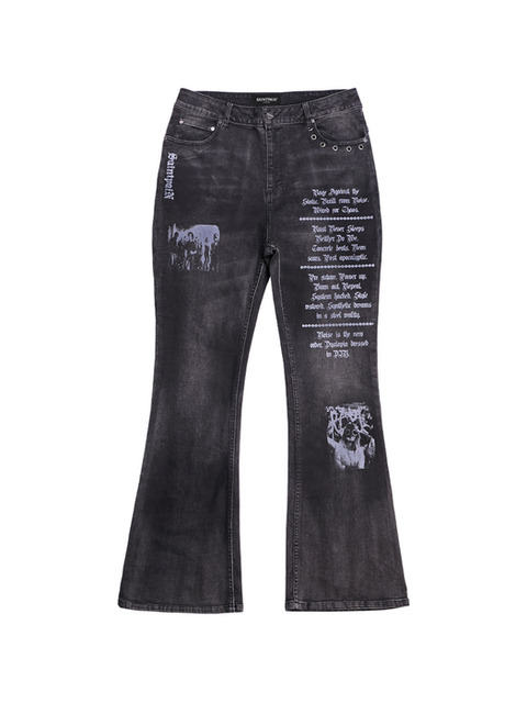 [세인트페인] SP 펑크 플레어 데님 팬츠 블랙