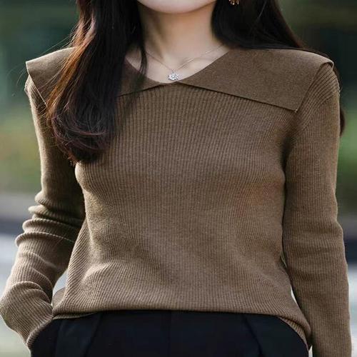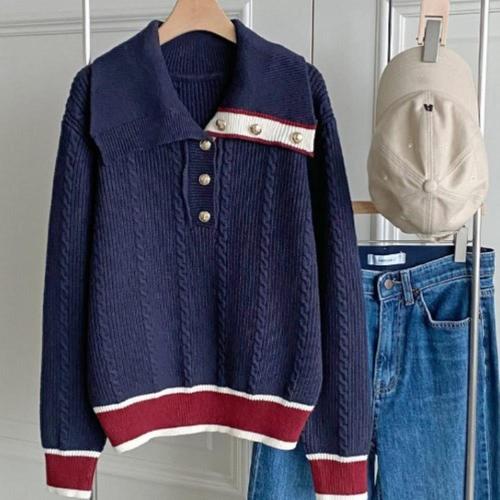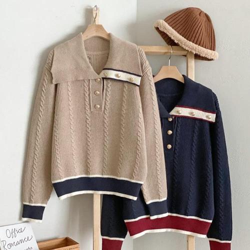 [신상오픈런]여성 비스코스 배색 세일러 칼라 단추 니트
