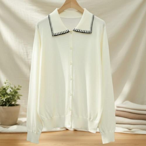 여자 부드러운 울혼방 세일러 카라 니트 가디건