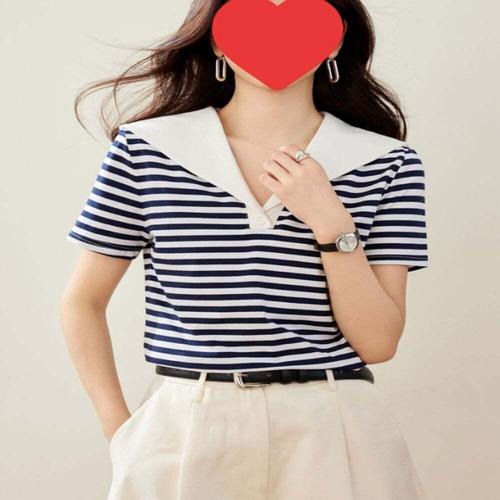 [셀럽하우스]여성 XDGB7089 스트라이프 썸머 마린무드 세일러 반팔티셔츠
