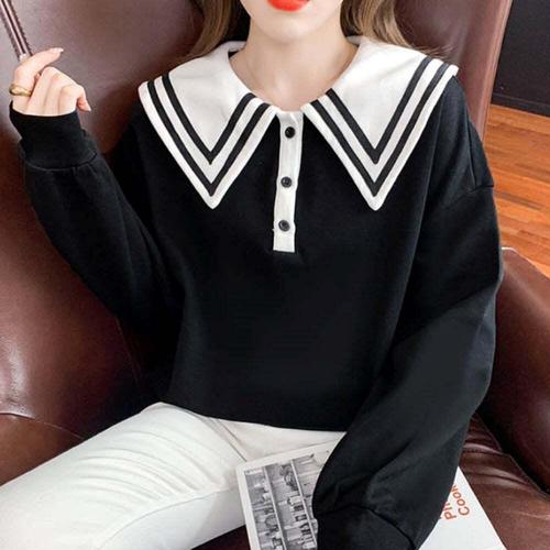 허밍퍼플 여성용 9649-BN 스토리 단추 카라 빅사이즈 니트 티셔츠 상의 세일러 맨투맨 오버핏 여성의류