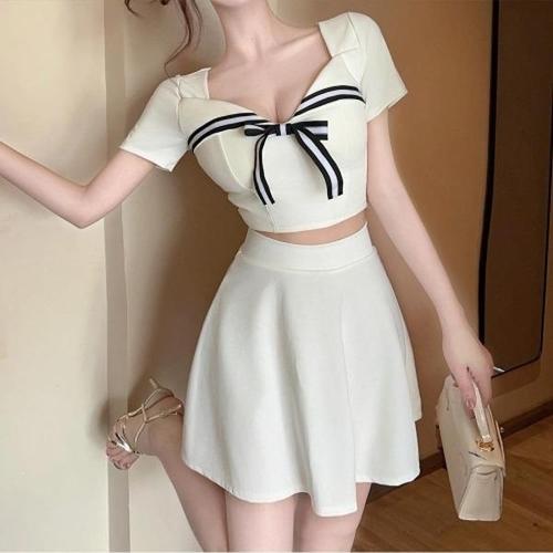 고품질 슬림라인 반팔 셔링퍼프 세라복세트(셔츠 타이 치마) (WFKJYXU)