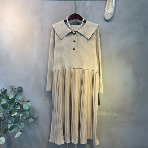 씨샵인더룸 / 나비 세일러 카라 플리츠 니트 긴팔 롱 원피스 2color