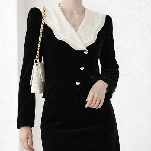 여성 세일러카라 카디건 FW 골지 단추 퍼니트