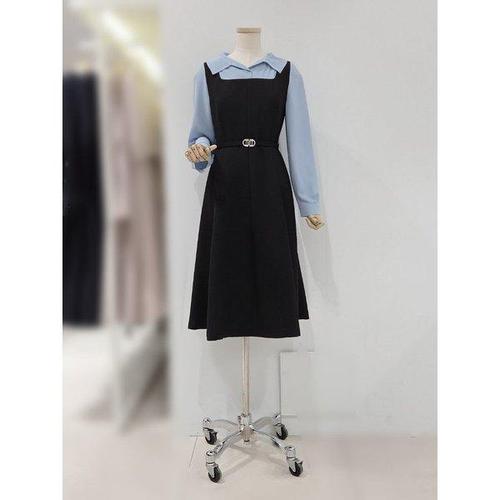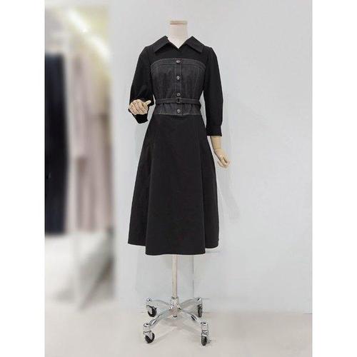 [숲]블라우스배색 뷔스티에형 플레어 원피스 SC4OPM1