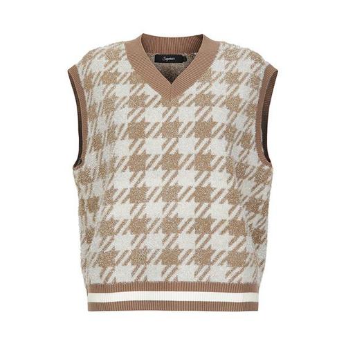 [슈페리어][슈페리어] 여성 글렌체크 브이넥 베스트 세피아 (IWPFTSV40256)