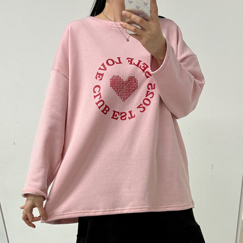 나야홍 / 빅사이즈 601 기모셀프하트티셔츠 DBAV820