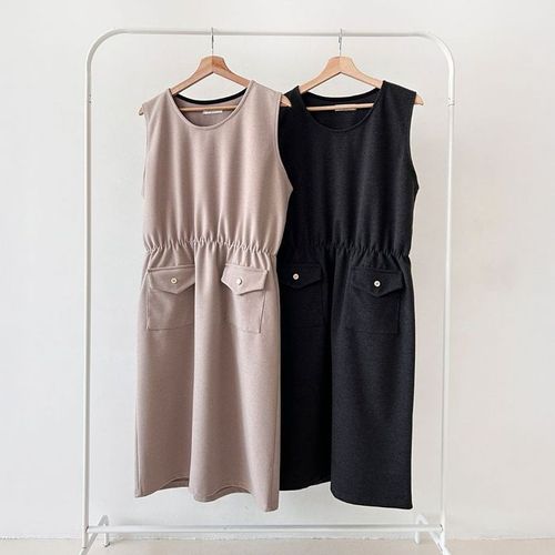[바스카라] 셔링 스트링 포켓 롱 원피스 (3colors)