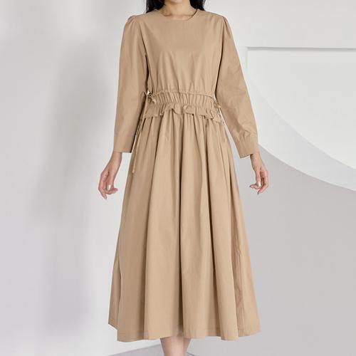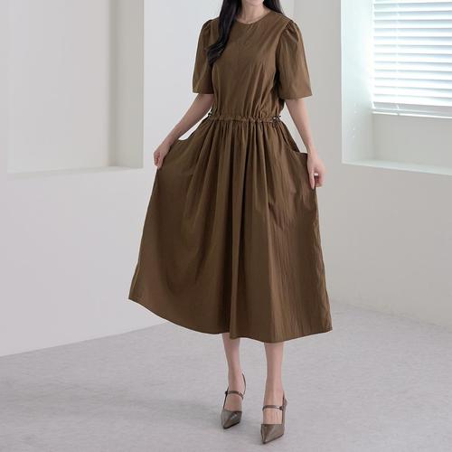 [하프클럽/]셔링 라운드넥 스트링 벌룬소매 롱 원피스