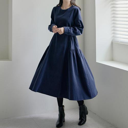 [로즈미] [55~77] 마션 스트링 셔링 코듀로이 원피스