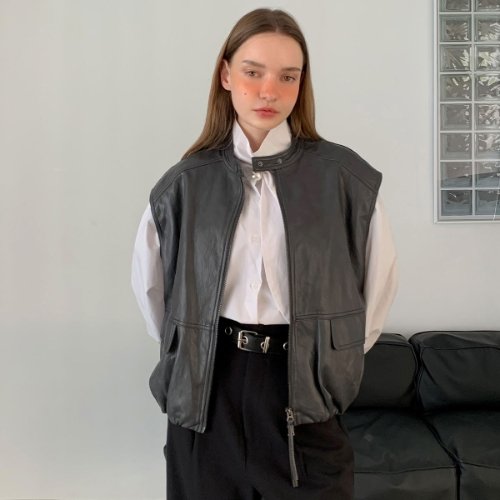 [바스카라] 페이크 레더 셔링 집업 베스트 (3colors)