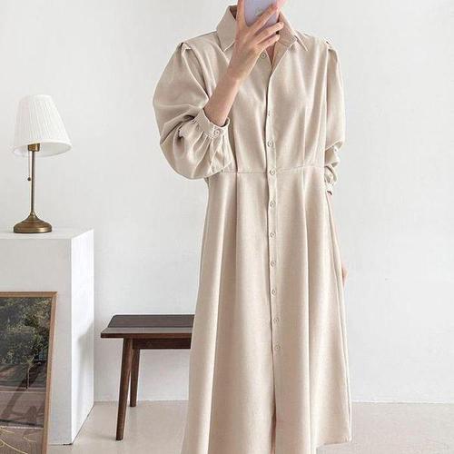 [신상오픈런]여성 가을 하객 스타일 박시 플레어 롱셔츠 원피스