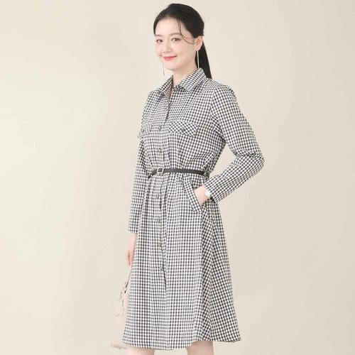 [애비뉴투지]엄마옷 고방 체크 셔츠 카라 단추 주머니 봄 가을 긴팔 롱 원피스 + 허리벨트 K10545