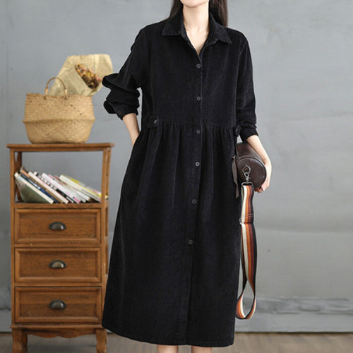 나바바 / NO948 코듀로이 무지 롱 카라 긴팔 셔츠 원피스