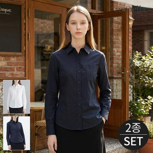 [로코엘라] 키튼 시그니쳐 로고 자수 여성 코튼 셔츠 2종세트