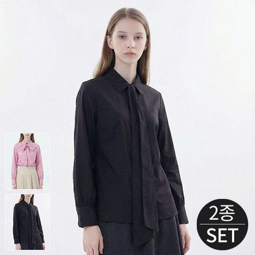 [로코엘라]리안 리본 타이 여성 셔츠형 볼륨 블라우스 2종세트
