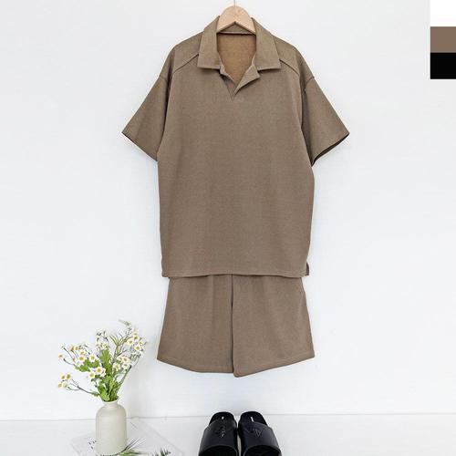 [모로엠]남성 여름 카라넥 반팔 셔츠 반바지 세트 DM-SET-QSS1016M