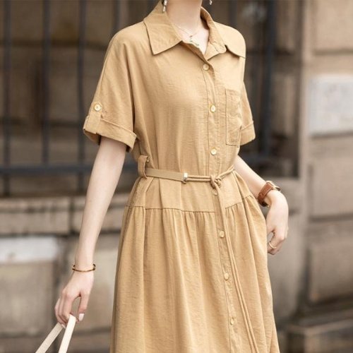 [셀럽하우스]셔츠원피스 RDFH7020 청원피스 카라 포인트의 벨트 셔츠형