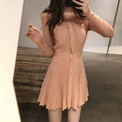 여름 셔츠 주름 온나핏 뷔스티에 니트 원피스 WFKNXOU