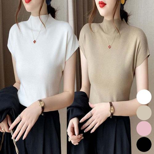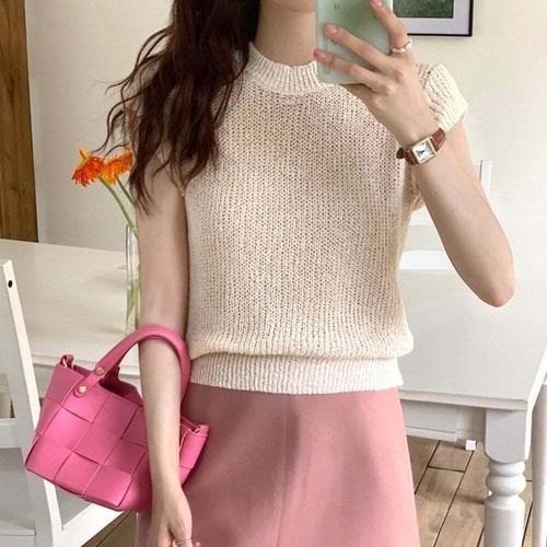 [셀럽하우스]여성 QZYM5464 민소매 느낌 캡소매 반팔 반목 니트 하프넥