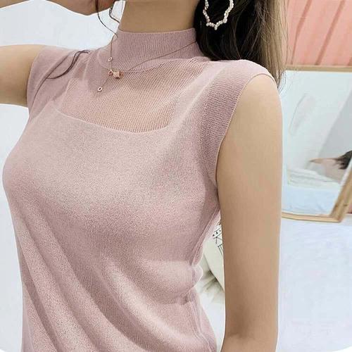 [셀럽하우스]슬리브리스 CUCG3445 슬림핏 니트 베이직 민 소매 나시 티 셔츠