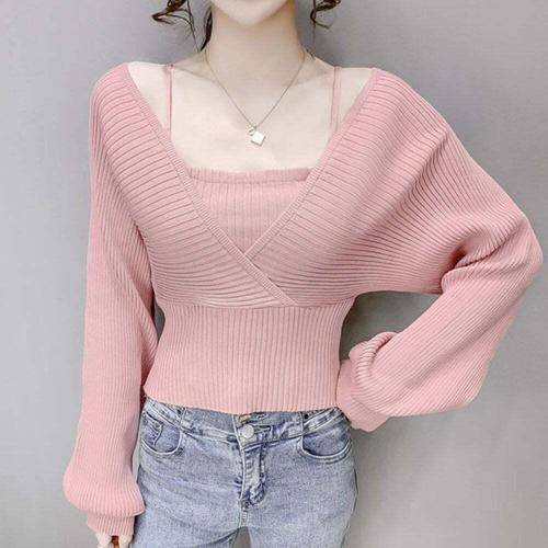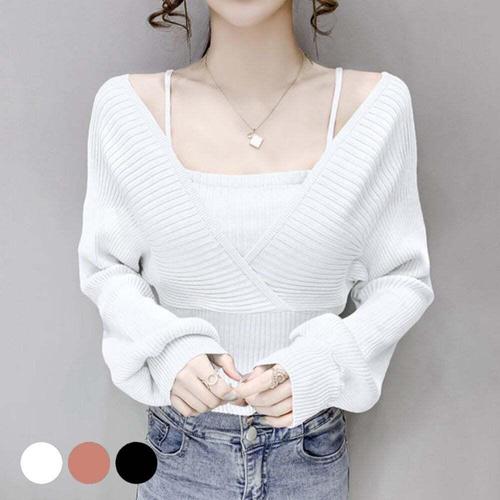 [셀럽하우스]니트 BBTF8415 랩 스퀘어 나시 퍼프 소매 긴팔티