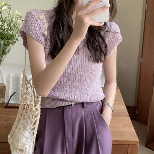 [셀럽하우스]여름 MOOF1201 시원한 여자 캡소매 니트 민소매 반팔 티셔츠