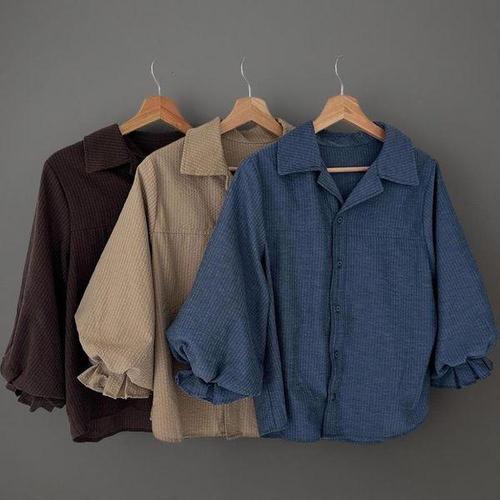 [신상오픈런]여성 퍼프 소매 프릴 7부 엠보 블라우스 가을 하객 스타일