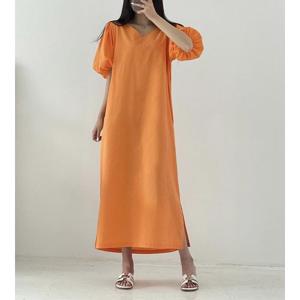 슈팅스타 / 브이넥 퍼프소매 하늘 허리 고무밴딩 A라인 원피스