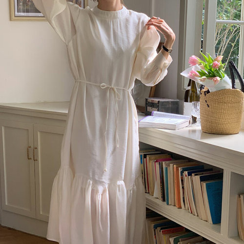 고급 플리츠 퍼프 원피스 여리핏 롱원피스 체형보정
