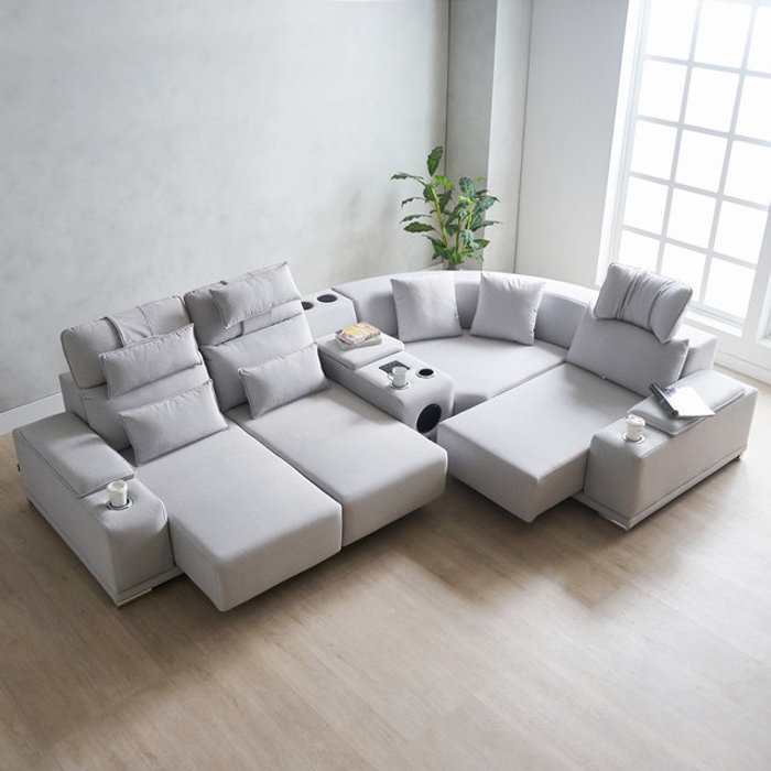아르마 4인용쇼파 팔걸이 회전 확장형 2300mm 에서 3240mm 기능성 소파베드 스피커 무선충전 독일 타이보 정품 아쿠아스웨이드텍스