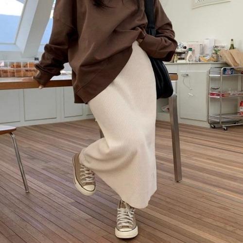[엄지척]여자 데일리 소프트 골지 소재 H라인 뒷트임 롱스커트_19958143_667501