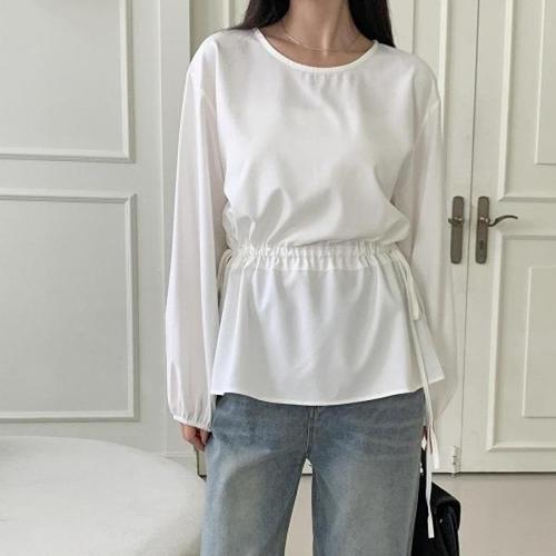 [다잇템][다잇템] 여자 롱슬리브 허리스트랩 소프트핏 미니멀리즘 블라우스_23210172_588872