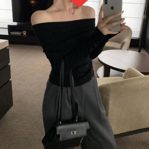 여성용 소프트 롱슬리브 스웨터 볼드숄더 탑