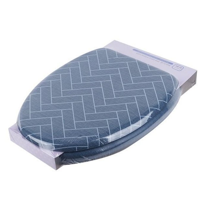 엄지척 소프트 헤링본 변기커버-네이비 U형 중형 푹신한