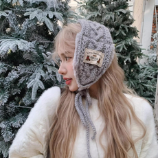 gradle 여성 러블리 방한귀마개 손뜨개 꽈배기 니트 귀도리 턱 끈 털귀마개