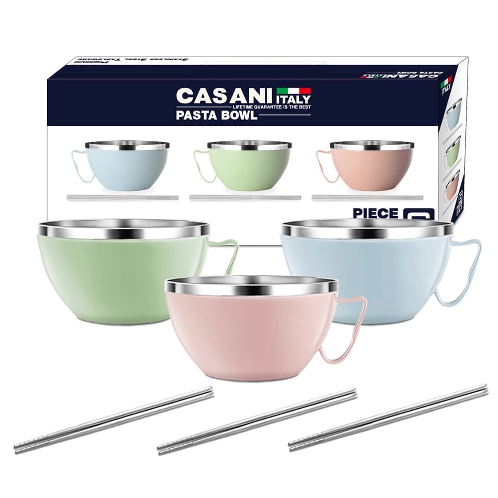 스텐 손잡이 그릇 세트 6p 면기 냉면 라면 그릇 식기세트