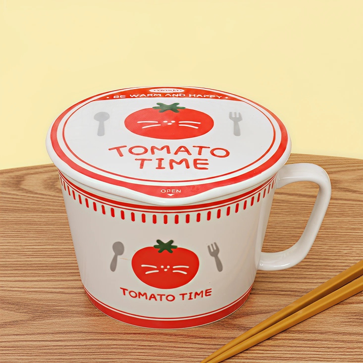 토마토 도자기 면기 + 뚜껑 set 전자레인지 가능 손잡이 그릇