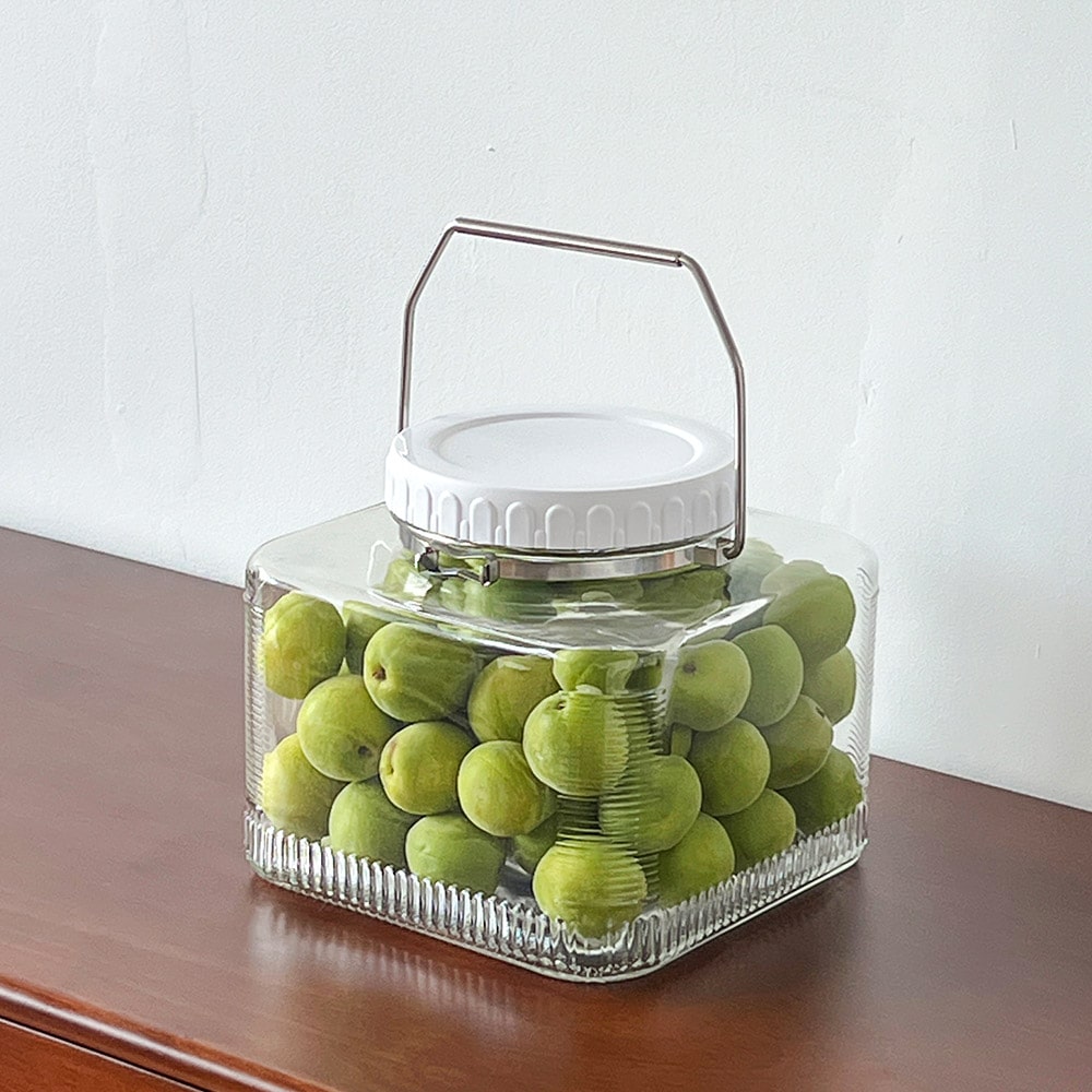 갤런 담금주 눈금 유리병 클립탑 스텐손잡이 사각 7600ml