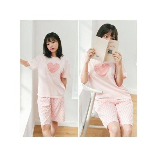 [솔브]부드럽고 신축성 있는 여성 반팔 반바지 이지웨어 파자마 홈웨어 세트