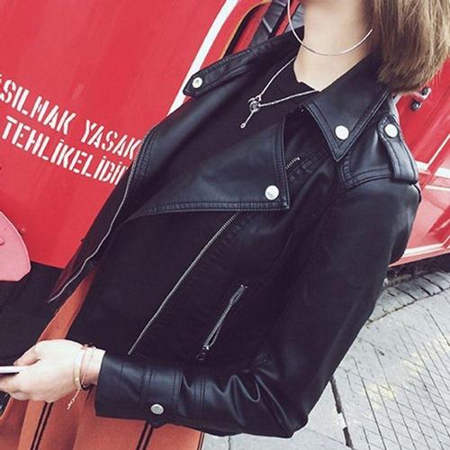 여성용 숏 가죽 코트 가을 재킷 시크 크롭 라이더 PU 집업 점퍼 간절기 바람막이 아우터
